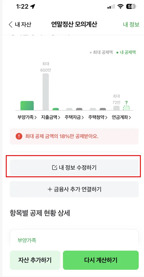 하지만 주의하셔야 합니다. 주변 지인들에게 알려줬더니 "나는 왜 0원으로 나와?"라며 묻더군요. 확인해 보니 '자산 연결'과 '공제 항목 설정'을 제대로 하지 않아서였습니다.